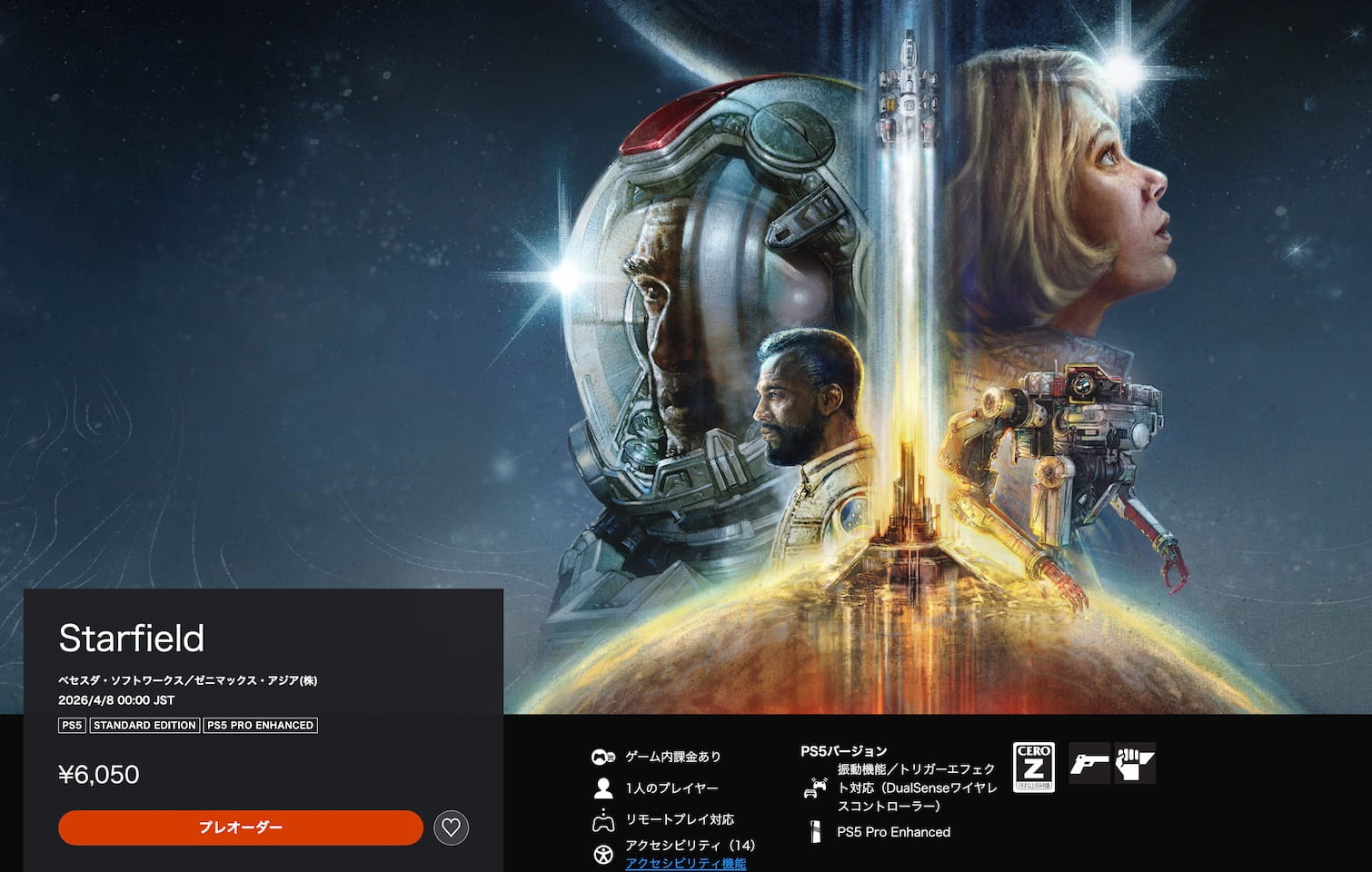 [Starfield]PS5 版は、4月8日発売 および大規模な無料アップデート